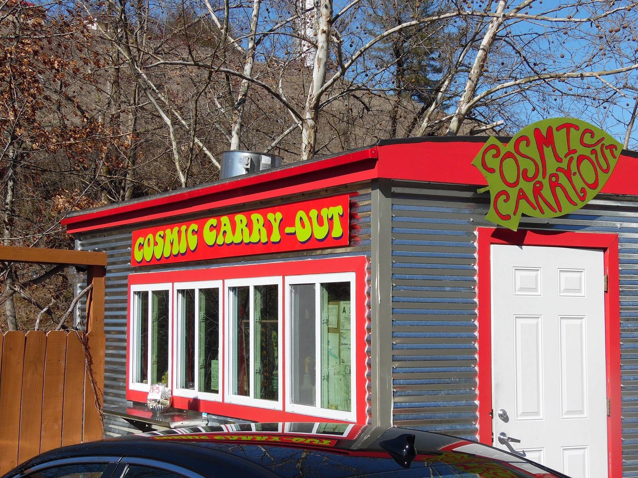 Cosmic Carry-Out is a Food cart serving Innovation Brewing, specializing in hand-made burgers, veggie burgers, and hand-cut french fries. Tacos are served Monday thru Thursday.